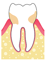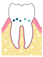 출혈, 잇몸뼈 손상, 치아 탈락의 원인 치석이 잇몸에 자극을 주면서 잇몸 염증이 생기고 치조골이 무너져 치주질환 발생 |